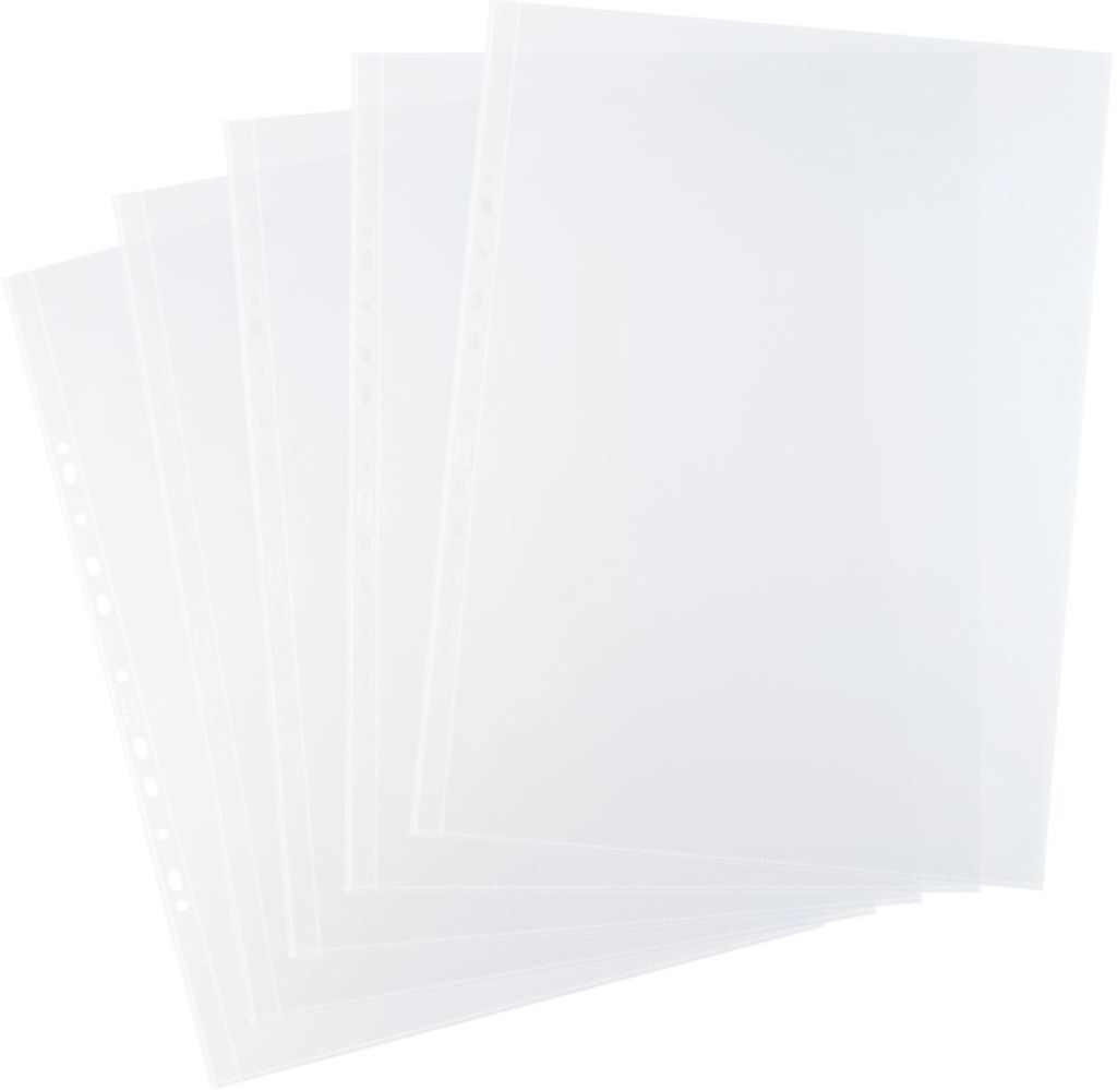 - Voor ft A3 Uit generfd kleurloos PP van 120 micron Staand Opening aan de bovenzijde Antistatisch 11-gaatsperforatie Pak van 25 stuks