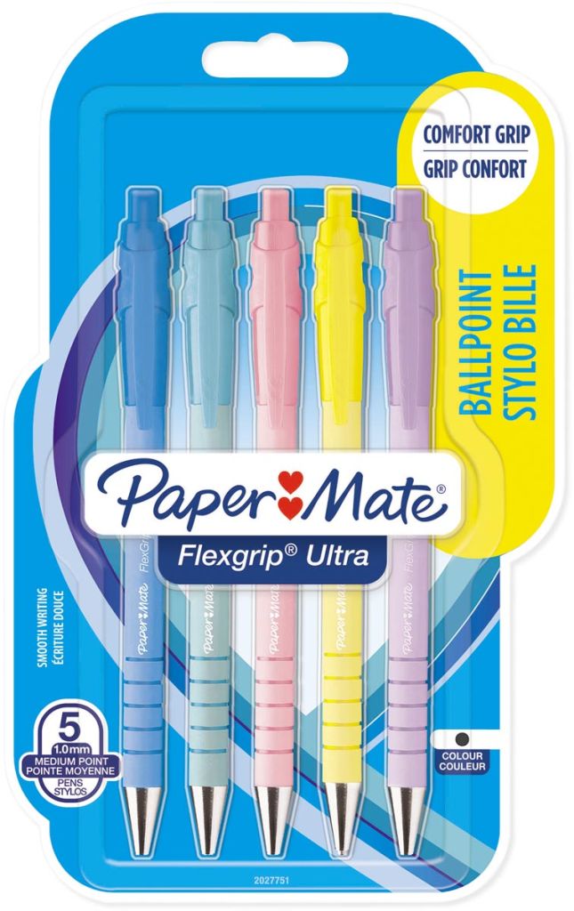 Paper Mate balpen Flexgrip Pastel RT, medium, blauwe inkt, blister van 5 stuks, assorti