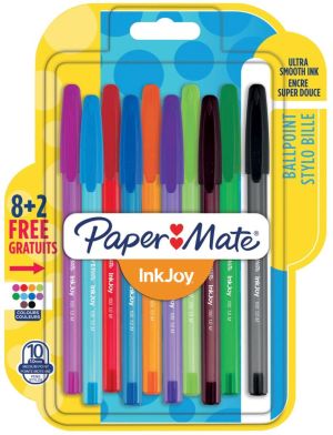 Paper Mate balpen InkJoy 100 met dop, blister 8 + 2 gratis
