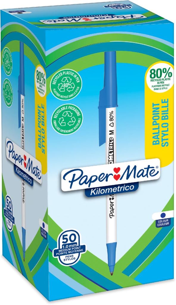 Paper Mate balpen Kilometrico, medium, doos van 50 stuks, blauw
