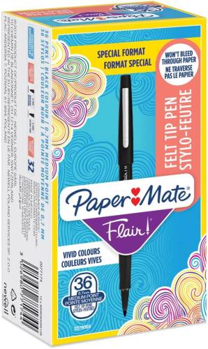 Paper Mate fineliner Flair Original, value pack van 36 stuks (30 + 6 gratis), zwart
