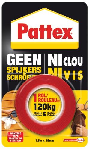Pattex Montagetape Ft 19 mm x 1,5 m draagt tot 120 kg