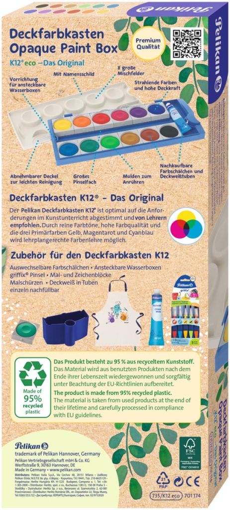 Pelikan verfdoos 735/K12 Eco, 12 napjes
