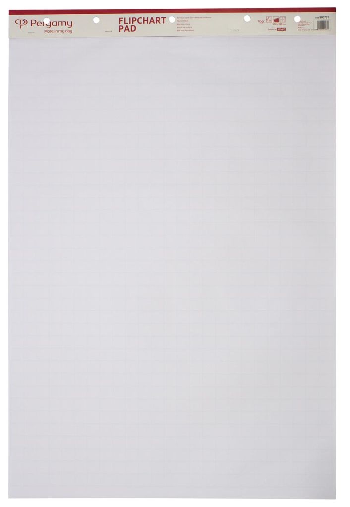 - Bovenaan geperforeerd met twee standaardgaten, zodat ze op elke flipchart passen