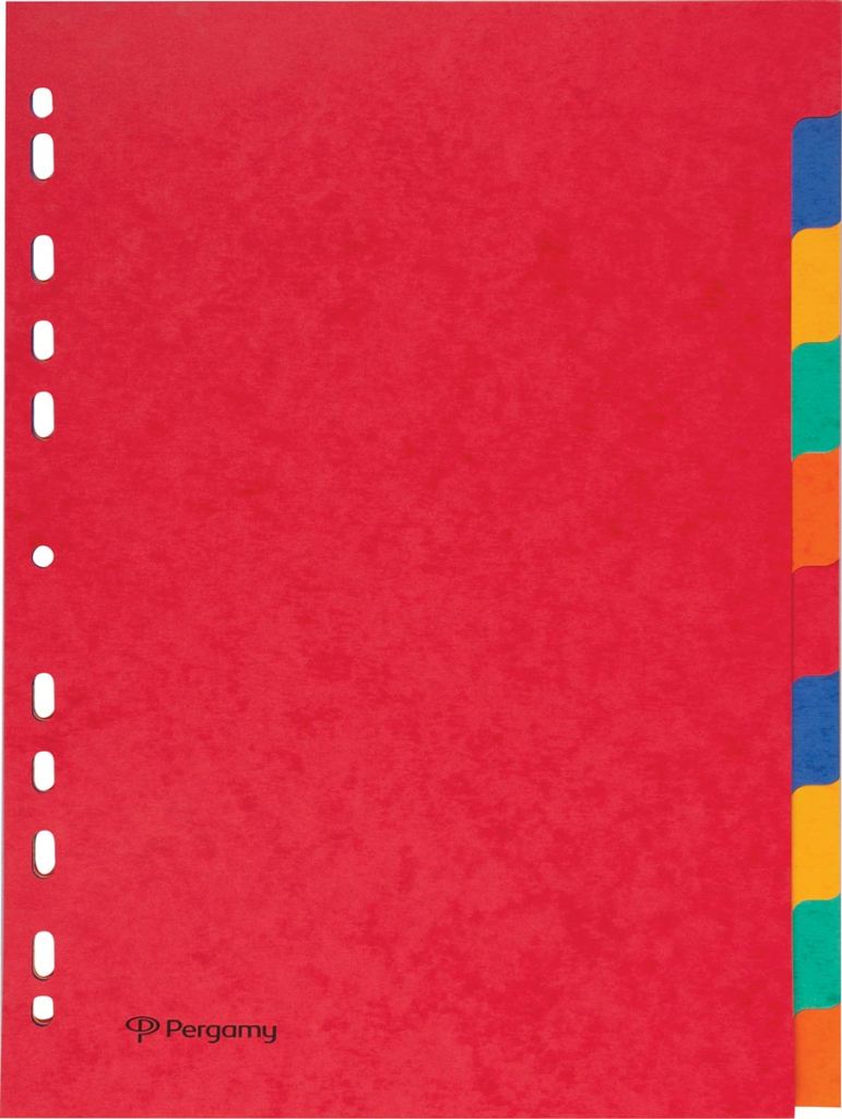 Pergamy tabbladen ft A4, 11-gaatsperforatie, stevig karton, geassorteerde kleuren, 10 tabs