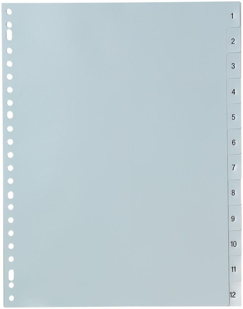Pergamy tabbladen, ft A4, 23-gaatsperforatie, grijze PP, set 1-12