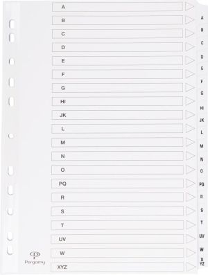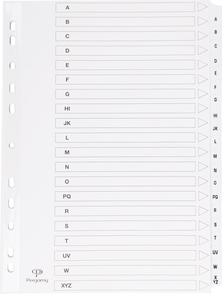Pergamy tabbladen met indexblad, ft A4, 11-gaatsperforatie, A-Z met 20 tabs