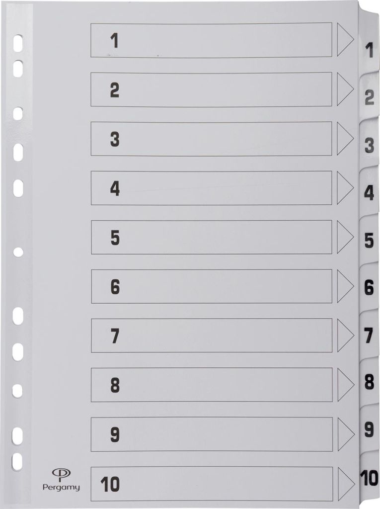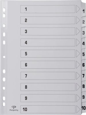 Pergamy tabbladen met indexblad, ft A4, 11-gaatsperforatie, karton, set 1-10