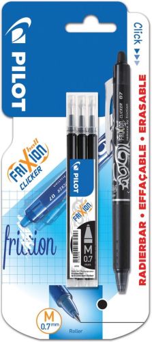 Pilot gelroller Frixion Ball Clicker, blister van 4 stuks (1 gelroller + 3 vullingen), zwart