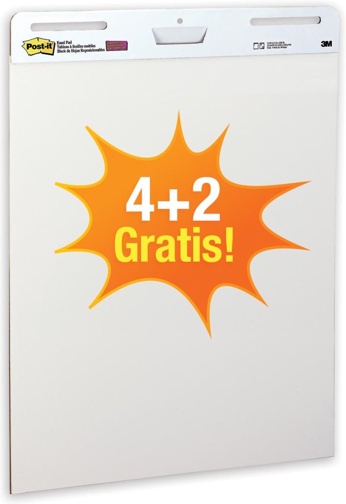 Post-it meeting chart, ft 63,5 x 77,5 cm, blanco, 30 vel, pak van 4 + 2 gratis