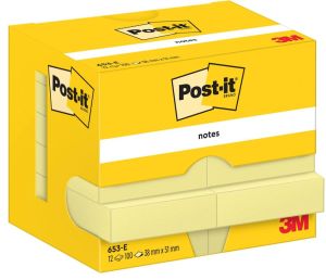 Post-It Notes, 100 vel, ft 38 x 51 mm, geel, pak van 12 blokken