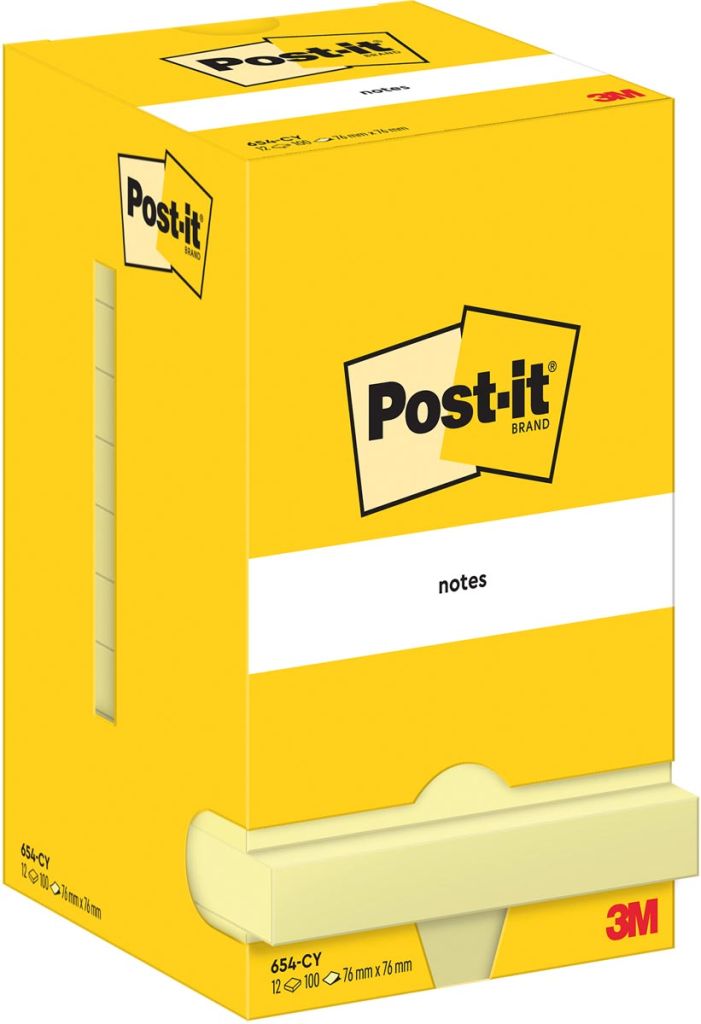 - Blok van 100 gele memoblaadjes Verpakking uit karton Pak van 12 blokken Certificaat: PEFC ft 76 x 76 mm