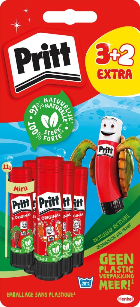 Pritt Original plakstift, 11 g, 3 + 2 gratis, op blister