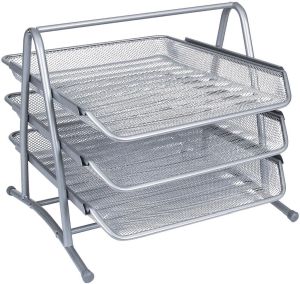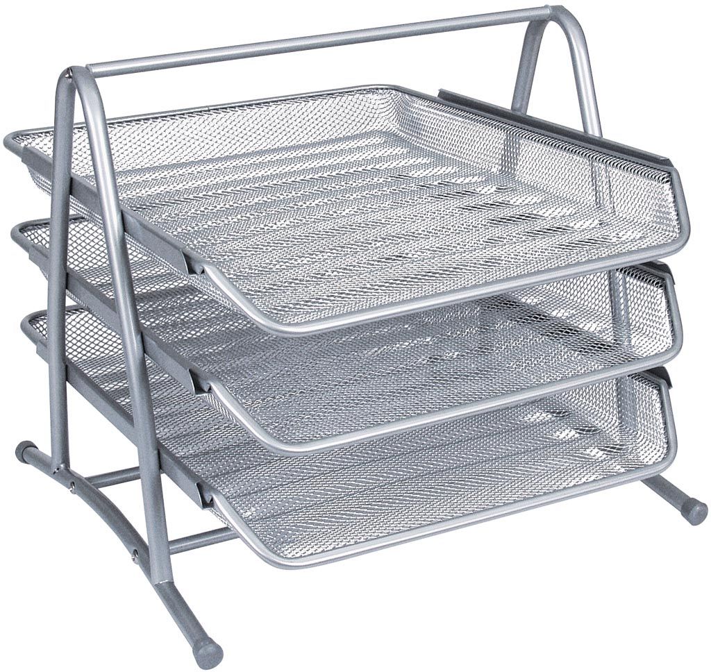 - Set met 3 brievenbakjes Uit mesh metaal Voor ft A4 Met rubberen voetjes Ft 27,8 x 35 x 27,5 cm (b x d x h) zilver