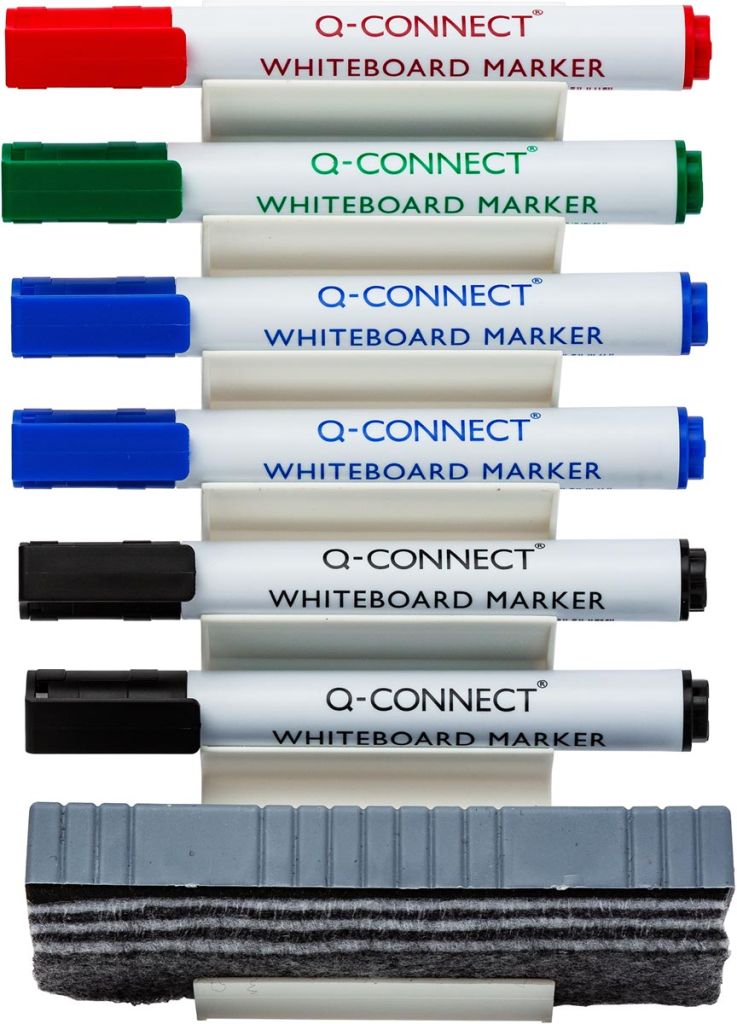 - Zelfklevend Houder inclusief 6 whiteboardmarkers (1 x groen, 1 x rood, 2 x zwart en 2 x blauw) en 1 wisser