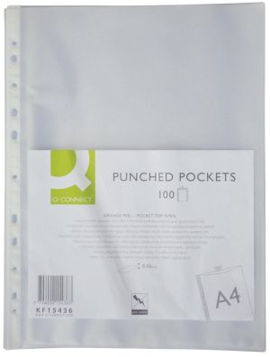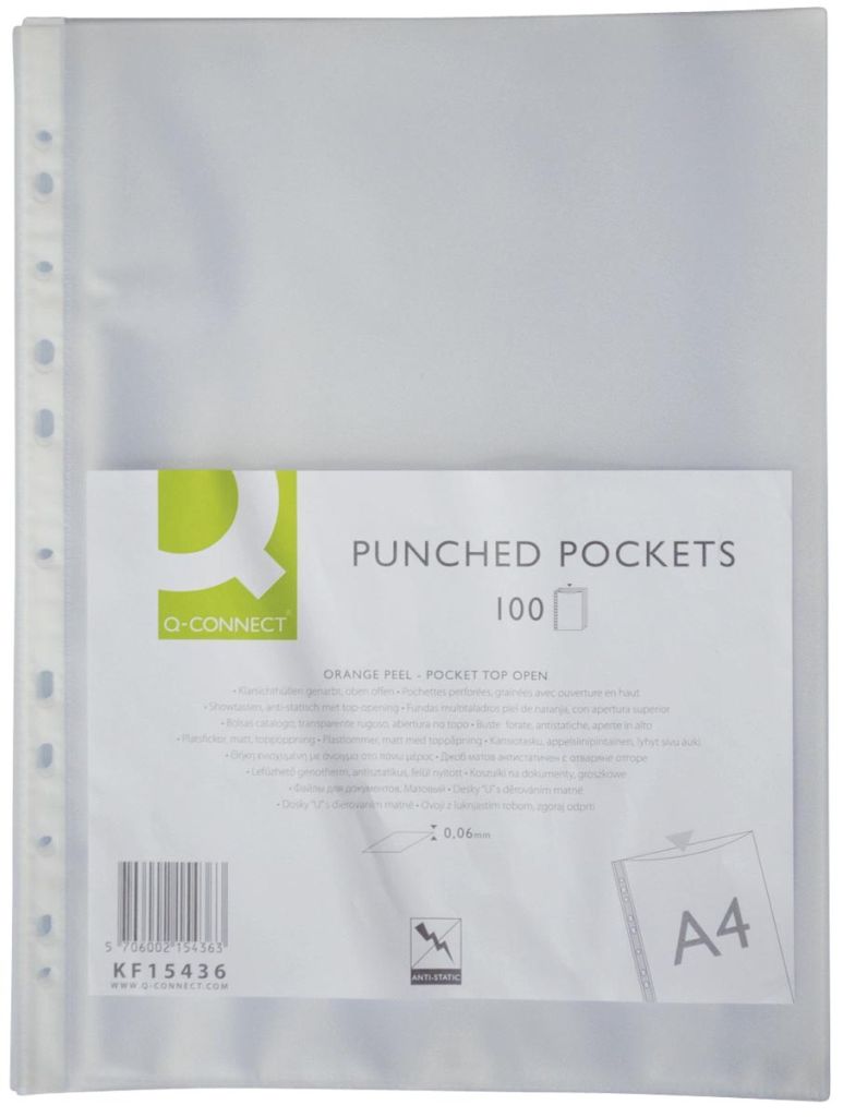 Q-CONNECT geperforeerde showtas 11-gaatsperforatie, gekorreld, 60 micron, pak van 100 stuks
