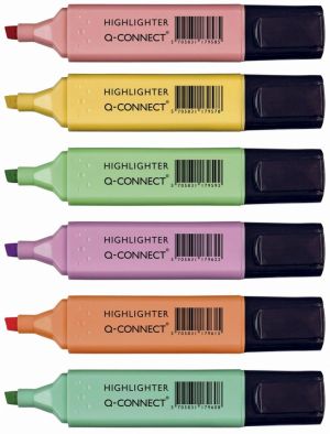Q-CONNECT markeerstift pastel, geassorteerde kleuren, pak van 6 stuks