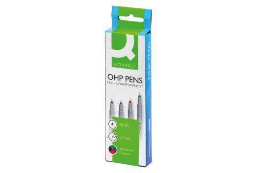 Q-CONNECT OHP marker, non permanent, fijn, set van 4 stuks in geassorteerde kleuren