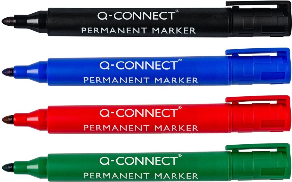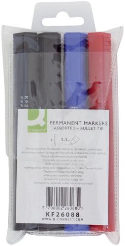 Q-CONNECT permanente marker, 2-3 mm, ronde punt, geassorteerde kleuren, etui van 4 stuks