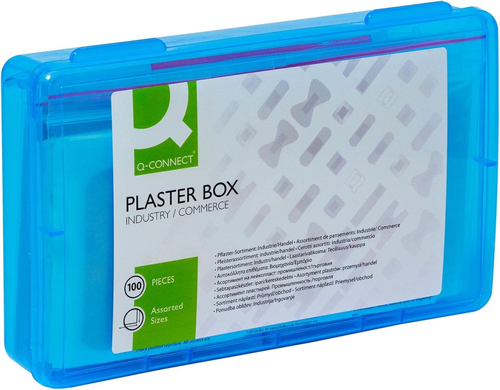 Q-CONNECT pleisters, assortiment van 100 stuks, in hersluitbare plastic box