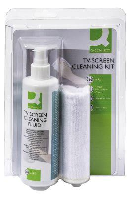 Q-CONNECT reinigingsspray voor scherm en toetsenbord inclusief doek pompspray van 250 ml
