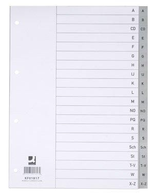 Q-CONNECT tabbladen, A4, PP, 11-gaatsperforatie, met indexblad, set van A-Z, 20 tabs, grijs
