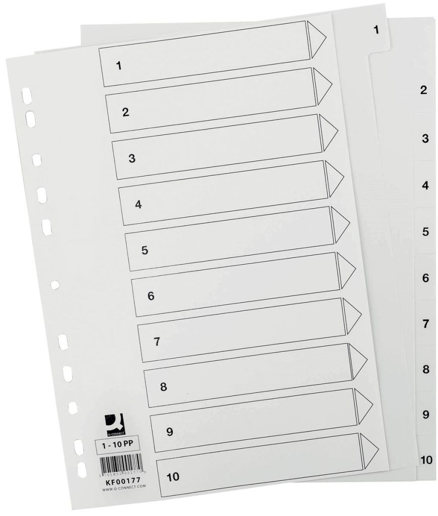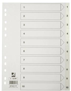 Q-CONNECT tabbladen, A4, PP, 11-gaatsperforatie,met indexblad, set van 1-10, wit