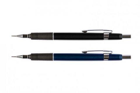 - Met antislip grip Metalen clip en drukknop Met gum Navulbaar 0,5 mm, houder in blauw of zwart