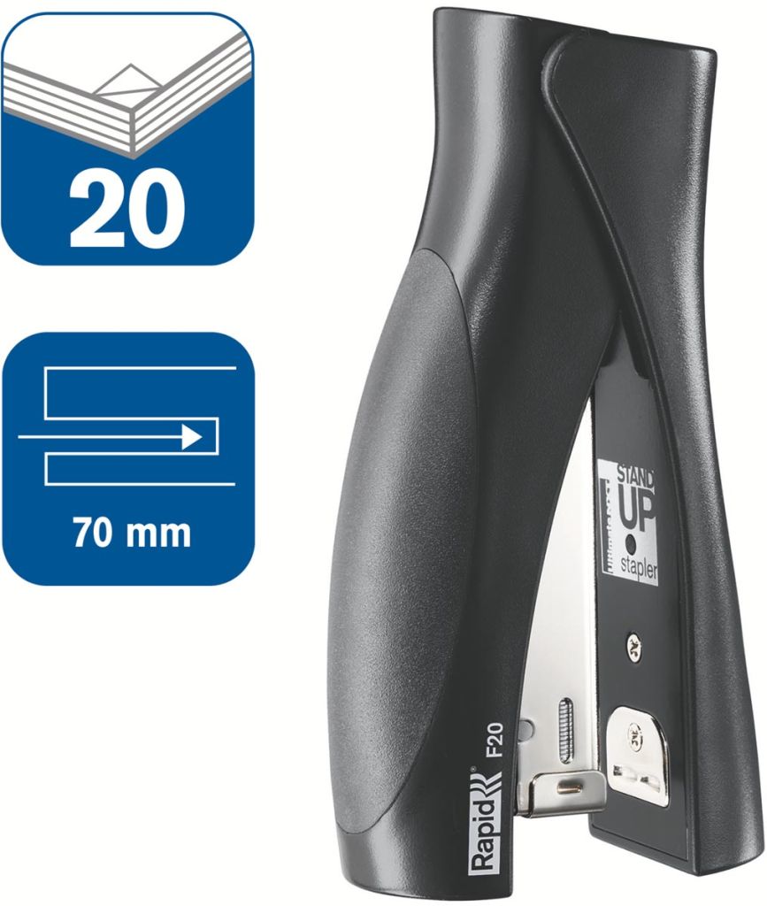 Rapid Fashion Ultimate StandUp nietmachine F20, niet 20 vel, voor nietjes 24/6 en 26/6, zwart
