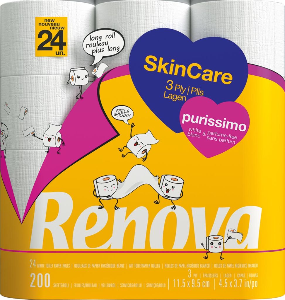 Renova Purissimo toiletpapier, 3-laags, 200 vellen, pak van 24 rollen