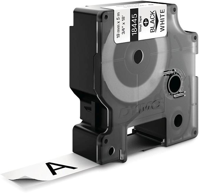 Rhino tape vinyl, 19 mm x 5,5 m, zwart op wit