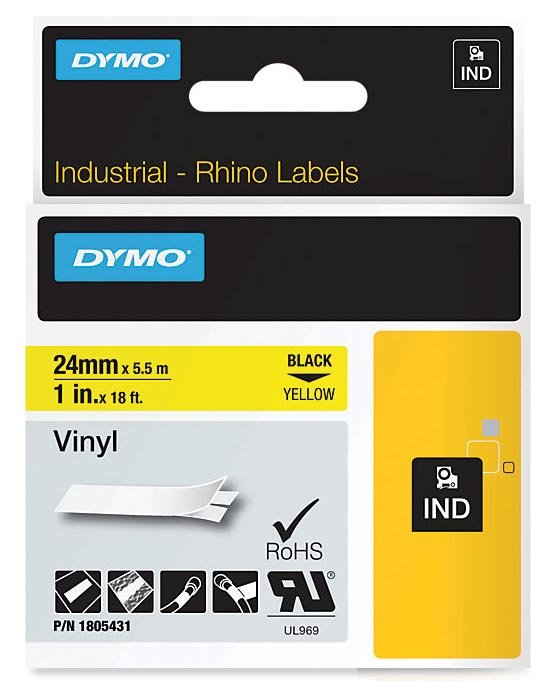 Rhino tape vinyl, 24 mm x 5,5 m, zwart op geel