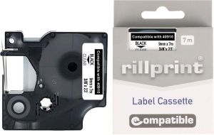 Rillprint compatible D1 tape voor Dymo 40910, 9 mm, zwart op transparant