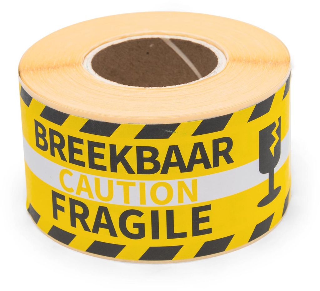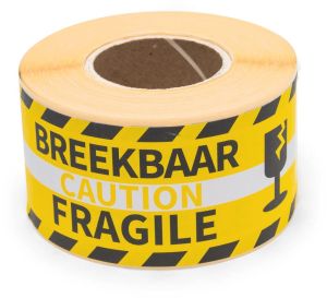 - Ft 46 x 125 mm Rol van 250 stuks geel, tweetalig: breekbaar/fragile