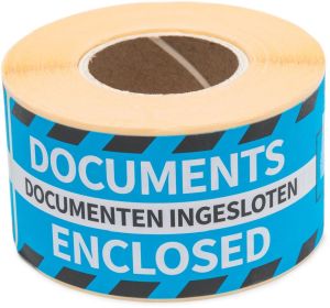 - Ft 46 x 125 mm Rol van 250 stuks blauw, tweetalig: documenten ingesloten/documents enclosed