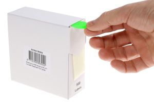 - Op rol, in handige dispenser Doos van 500 stuks diameter: 25 mm, groen
