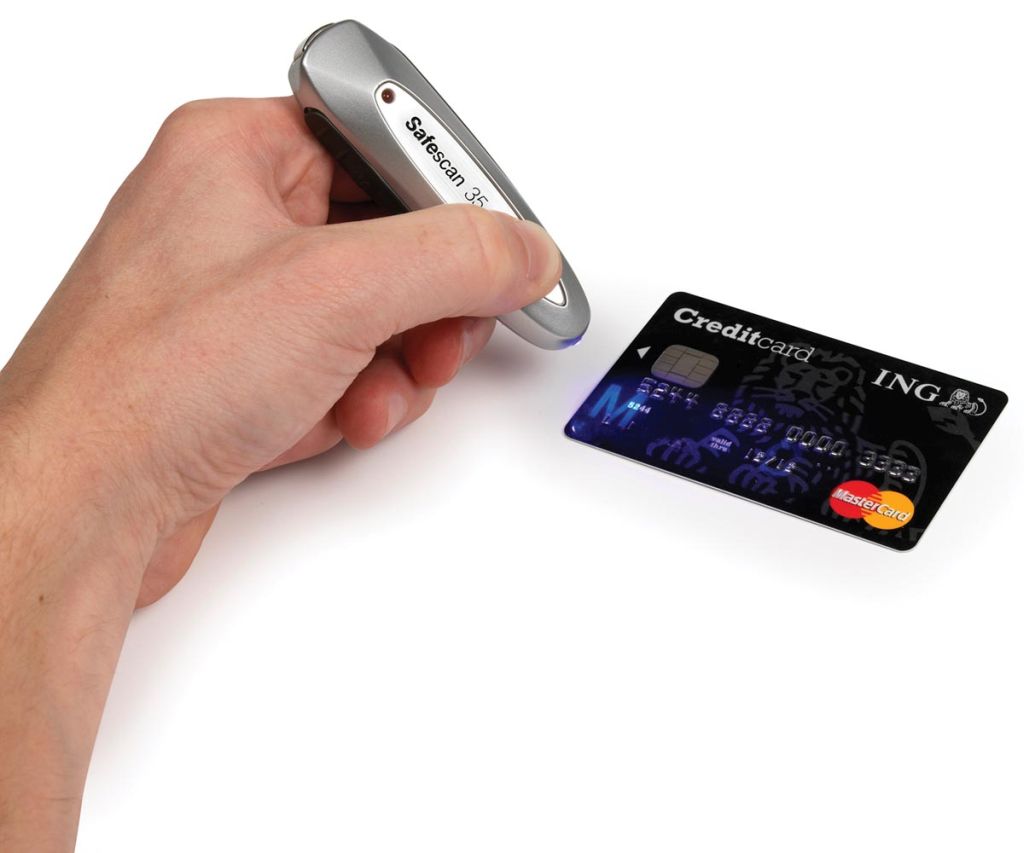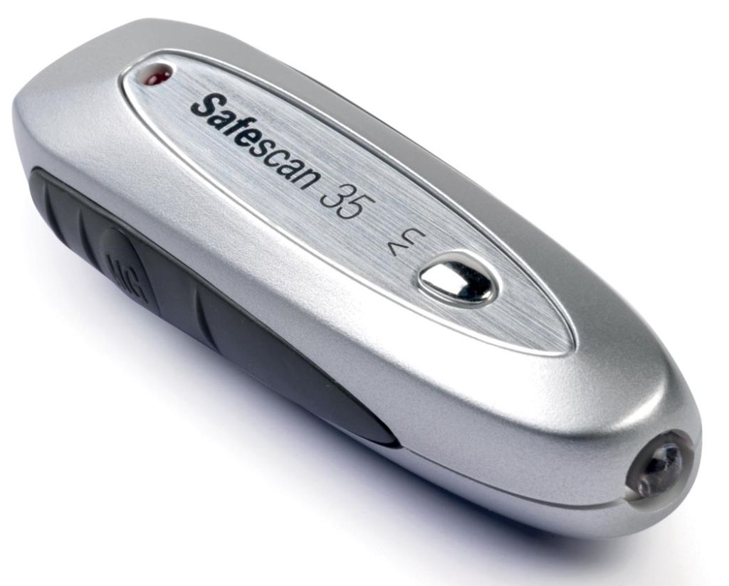 De pen werkt op verwisselbare batterijen (incl) en geeft een helder geluidssignaal als het bankbiljet over de juiste magnetische eigenschappen beschikt. Het krachtige UV lampje is een handig hulpmiddel voor het controleren van UV kenmerken op bankbiljetten, credit cards én identiteitsbewijzen. Het beste nieuws? De Safescan 35 is uiterst betaalbaar!