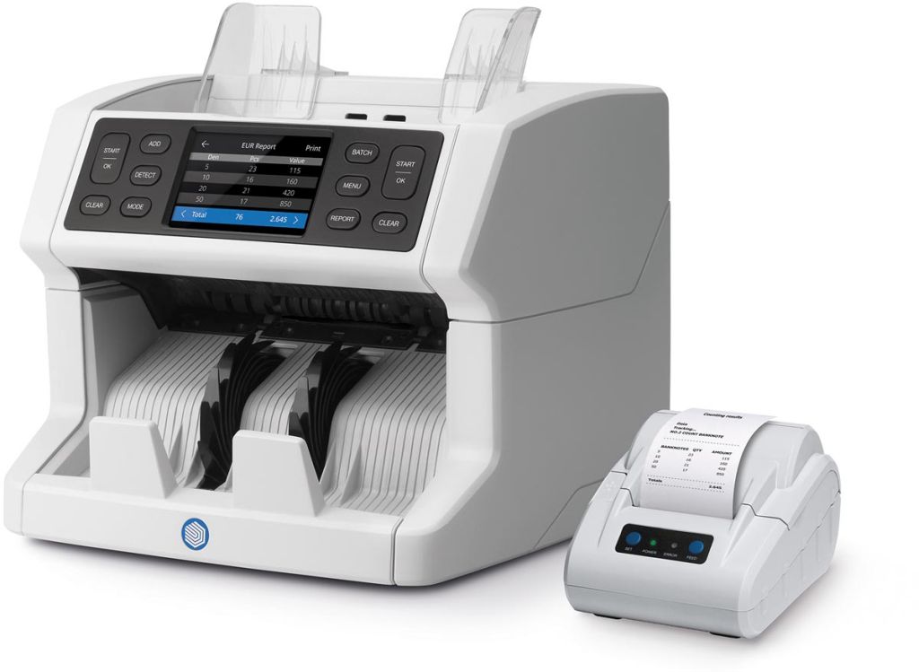 - Telt gesorteerde bankbiljetten voor alle valuta's Telt de waarde van tot wel 1.200 bankbiljetten per minuut Kan in de multi-mix-modus tot drie valuta's tegelijk tellen Verifieert bankbiljetten op basis van zeven echtheidskenmerken 100% geteste bankbiljettenverificatie door centrale banken Herkent automatisch welke valuta of denominatie wordt ingevoerd Maakt stapels van gelijke hoeveelheden bankbiljetten met de batch-functie Eenvoudig te bedienen dankzij het high definition touchscreen met een meertalige interface en quick menu Scant de kleinste details van bankbiljetten dankzij de dubbele CIS-technologie Stopt met tellen en geeft een hoorbaar en zichtbaar alarm als er een verdacht bankbiljet wordt gedetecteerd Helpt een lange levensduur te garanderen door onderhoudsmeldingen weer te geven wanneer het apparaat moet worden schoongemaakt
