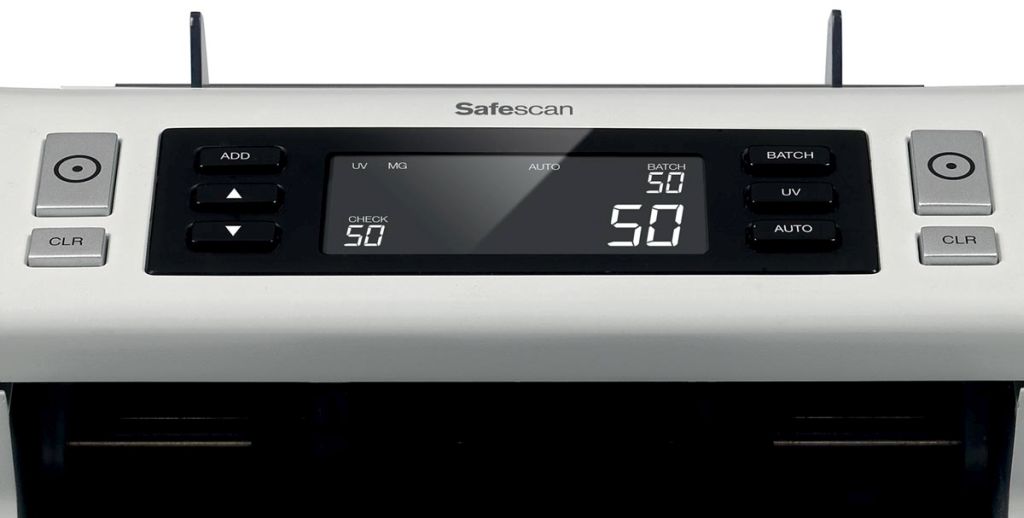 De Safescan 2250 is uitgerust met een geavanceerd controle- en waarschuwingssysteem dat een alarmsignaal geeft en de machine stopt als eenvals biljet gedetecteerd wordt. De telresultaten duidelijk afgebeeld op het grote lcd-scherm van de machine. De Safescan 2250 telt met een snelheid van 1.000 biljetten per minuut, beschikt over een autostart/autostop functie, maakt optellen en afpassen mogelijk en is geschikt voor alle valuta. Ft 29,2 x 24,6 x 17,8 cm. Gewicht: 7 kg. Voltage: 220V. CE gecertificeerd. Garantie: 3 jaar. biljettelmachine + 3-voudige detectie - UV, MG, IR