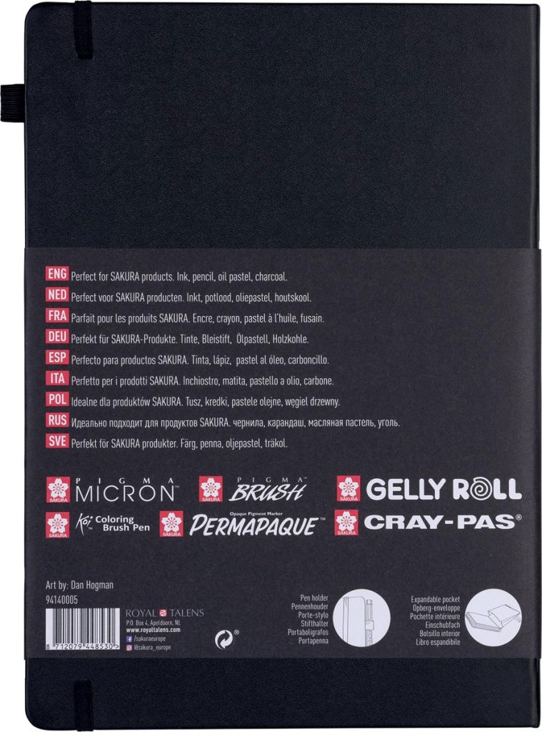 - Met penhouder, een uitvouwbare envelop, een elastisch sluitbandje en een uniek geïllustreerde slip-over-kaft