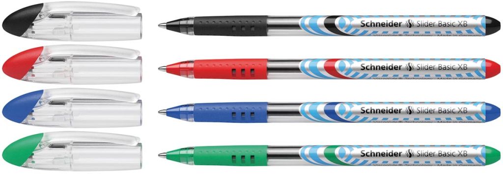 Schneider balpen Slider Basic, extra breed, geassorteerde kleuren, etui van 3 + 1 gratis