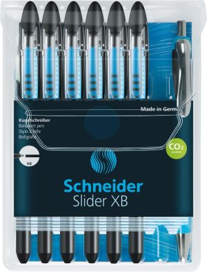 Schneider balpen Slider Basic, extra breed, zwart, doos van 6 + 1 gratis