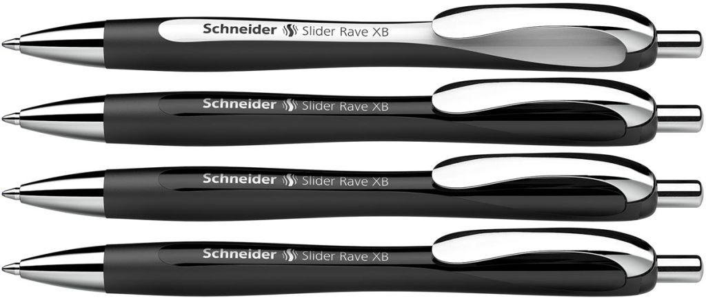 Schneider balpen Slider Rave, extra breed, blauwe inkt, zwart, doos van 3 + 1 gratis