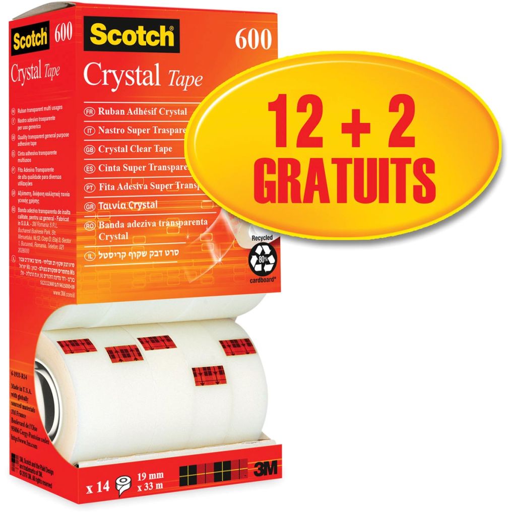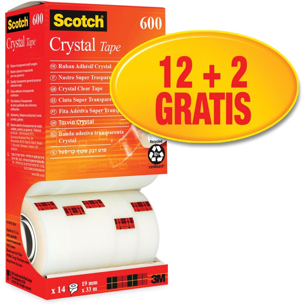 Scotch Plakband Crystal ft 19 mm x 33 m, doos met 14 rolletjes (12 + 2 gratis)