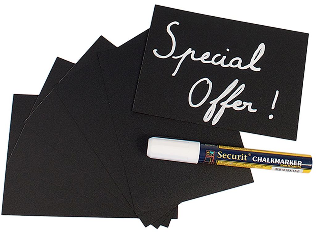 - Om als prijskaartje te gebruiken Dubbelzijdig en flexibel Makkelijk schoon te maken Inclusief 1 krijtmarker, 4 prikkers en 2 houders Op blister set van 20 stuks, ft A6