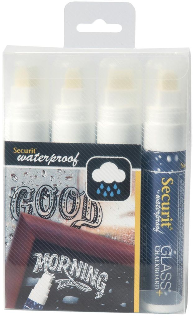 Securit Waterproof krijtmarker large wit, etui met 4 stuks