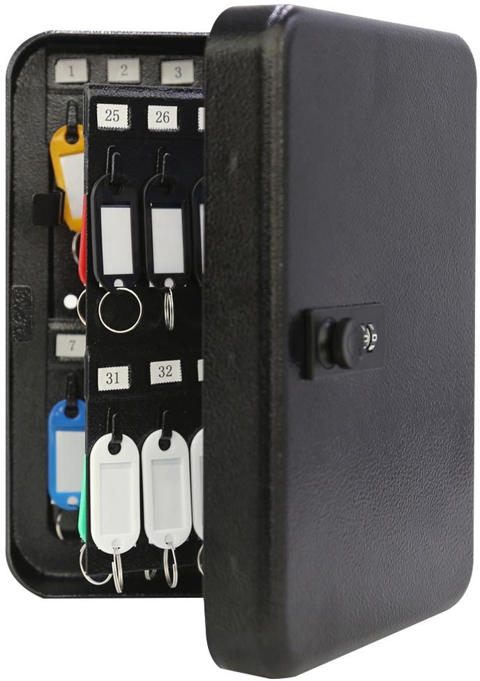 - Uit staal Veilig en praktisch opbergen van sleutels Genummerde haken Montagekit meegeleverd ft 25 x 18 x 7,5 cm, voor 48 sleutels, zwart
