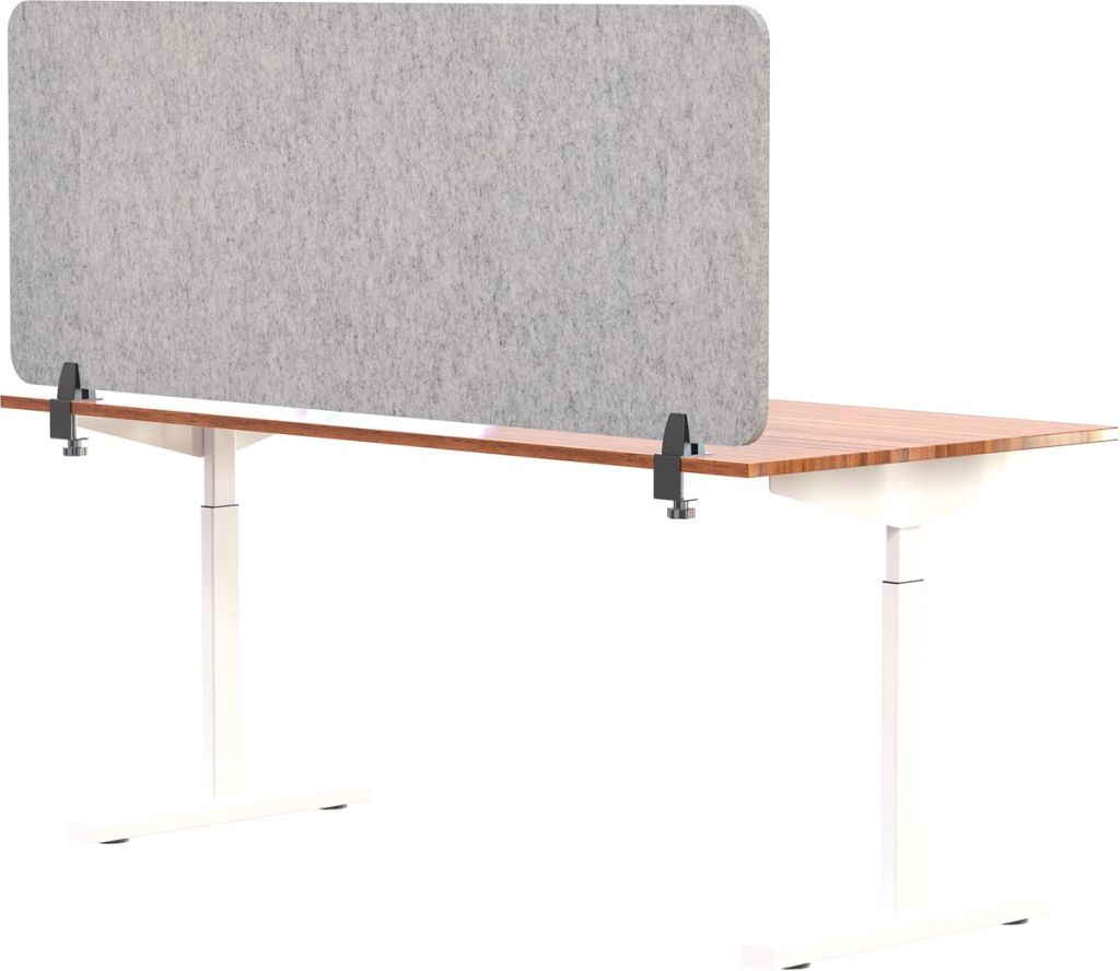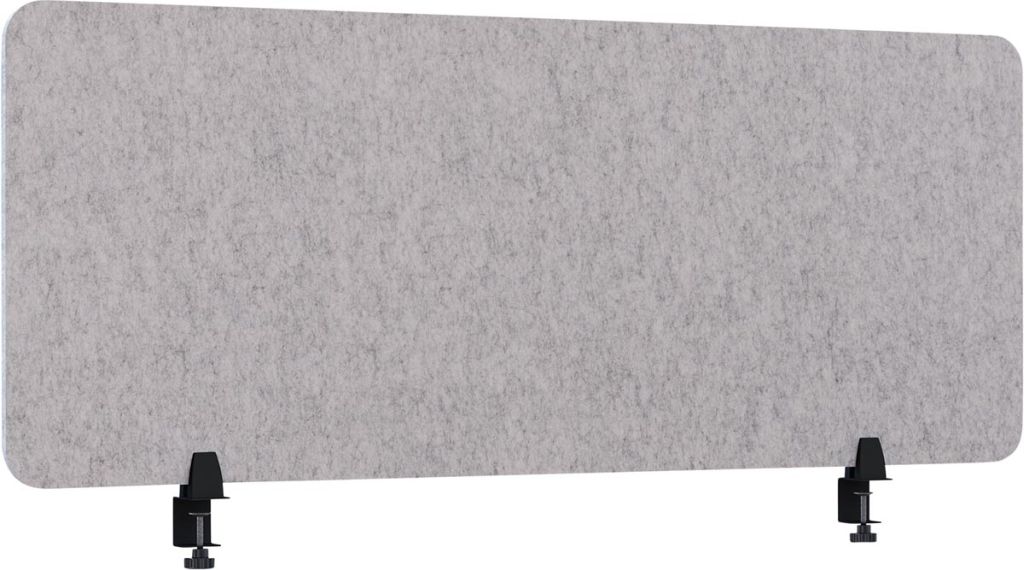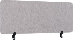 - Uit vilt van gerecycleerde PET-flessen Akoestisch: absorbeert hinderlijke nagalm en schelle geluiden Dikte: 18 mm Kleur: lichtgrijs ft 60 x 160 cm, inclusief 2 bureauklemmen voor tafeldiktes van 15 tot 34 mm