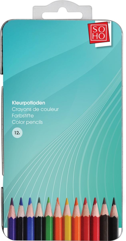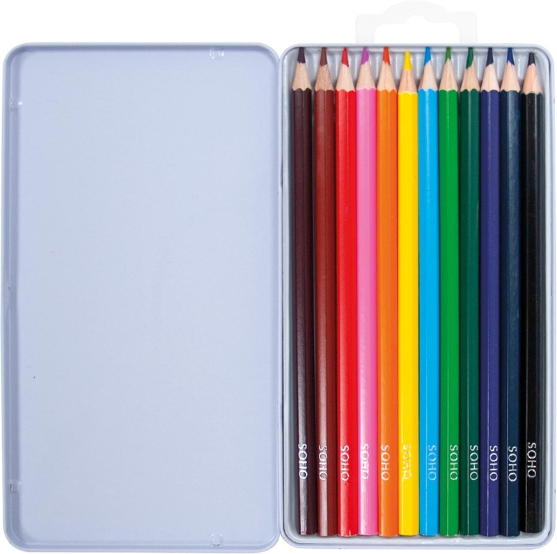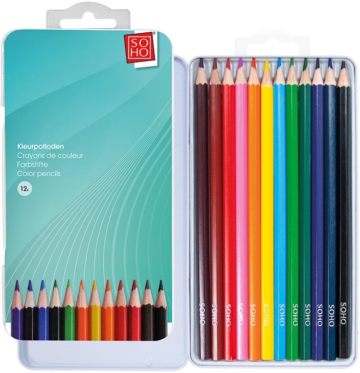 SOHO kleurpotloden, metalen doos van 12 stuks, geassorteerde kleuren