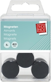 SOHO magneten, 20 mm, zwart, pak van 6 stuks